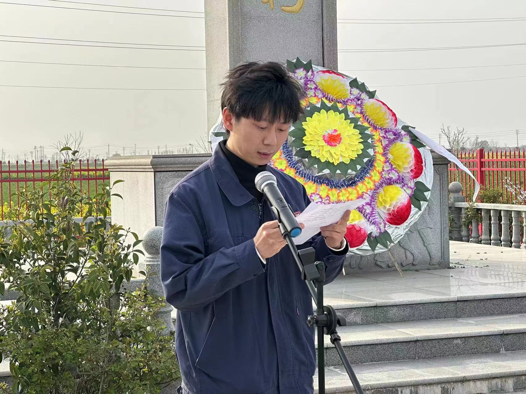 祭扫活动开始前,公司党支部委员刘艺领学了镇党委“ 3月份政治学习活页”。活动中,公司总经理、党支部书记翟海平、副总经理、党支部委员窦琴向孙剑心烈士敬献花圈。孙剑心烈士墓的主要倡议筹建者、泰州金太阳光伏发电有限公司董事长李志宏深情回忆筹建孙剑心烈士墓的经历,衷心感谢星火公司给予的大力支持。