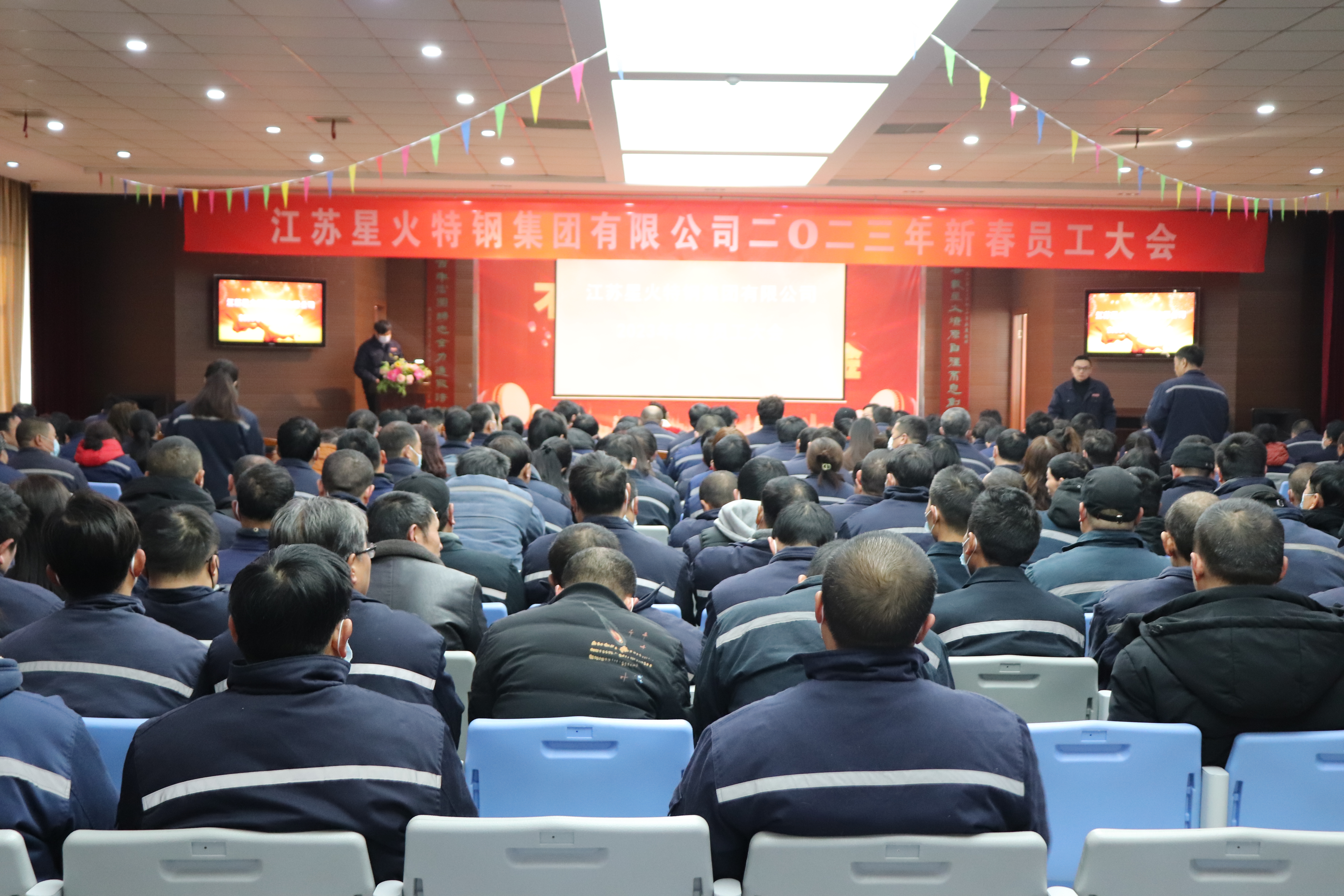 2023年1月29日正月初八上午,江苏星火特钢集团有限公司召开2023年度新春员工大会,董事长翟素萍,副总经理翟华平、董吉林、窦琴及公司员工共300余人参加会议。