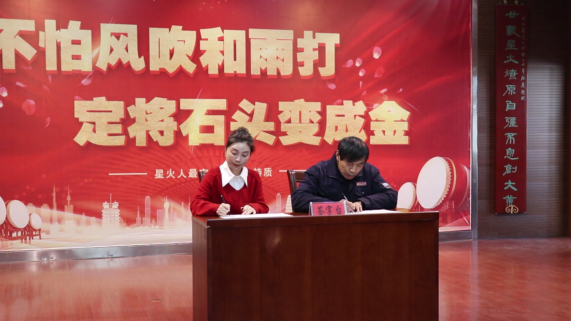 会议随后各层级、各分厂负责人顺序上台与董事长签订了《2023年经营管理目标责任书》,签下了名字也是签下了一份责任,一份担当。董事长希望各单位人员在新的一年里团结协作,为全面实现年度目标而拼搏奋进。