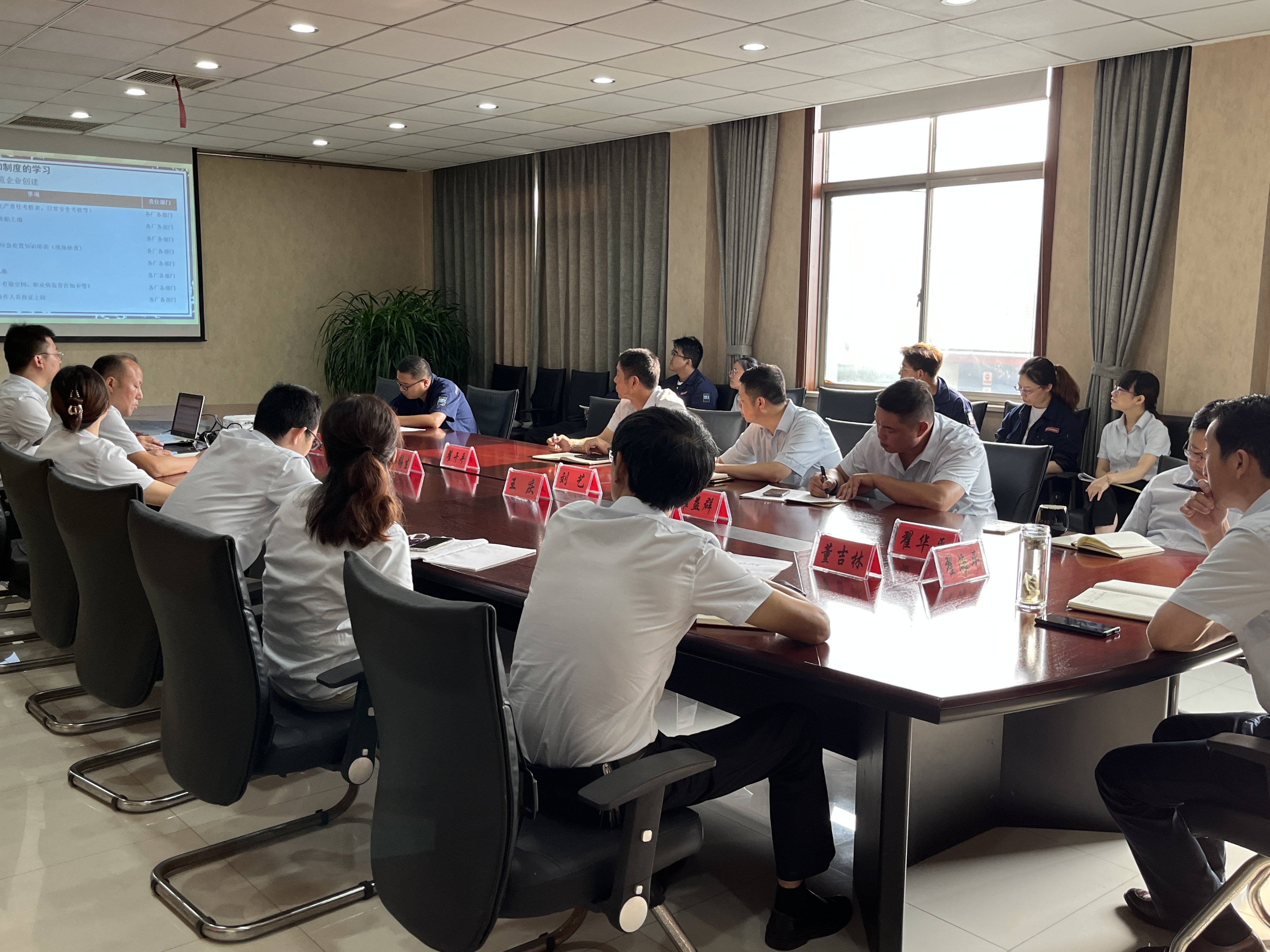 公司各部门领导人共同学习内外部政策法规、通知制度等。加强安全生产意识,各种生产设备要做到维护保养、定期自检等等事项。