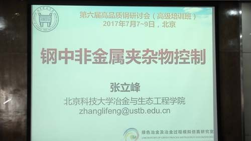 本次研讨会由中国金属学会炼钢分会、金属学会青年工作委员会和北京科技大学冶金与生态工程学院联合举办;会议邀请北京科技大学王新华教授、张立峰教授、张家泉教授、郭汉杰教授、美国安赛乐米塔尔钢铁公司Hongbin Yin教授和韩国浦项科技大学Youn-Bar Kang教授分别针对钢中非金属夹杂物控制、连铸坯内部质量控制、高铝钢、洁净钢及ESP精炼生产工艺等热点问题进行为期三天的授课。