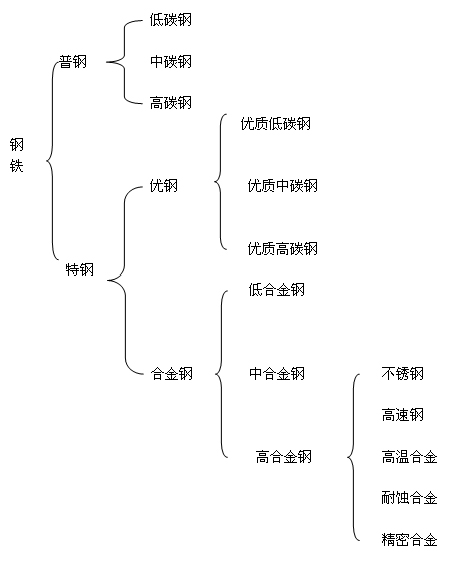 前段说的普钢在钢铁产业中的比例量达到90%左右。普钢解释为普通用途的钢,从金属元素称铁-碳合金。是金属铁元素中含有多少百分比的碳元素组成的金属,根据含碳量的高低分为: