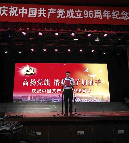 6月30日上午,戴南镇“庆祝中国共产党成立96周年纪念表彰大会”在镇文化中心隆重举行。会上兴化市委常委、市政协主席、镇党委主要负责人沙顺喜做了重要讲话,镇党委副书记、镇长夏爱东宣读了“2016~2017年度先进党组织”,“优秀共产党员”,“十佳共产党员”的决定。我公司被表彰为“先进党组织”,公司员工何云水、董宝平被表彰为“优秀共产党员”,杜忠罡同志获得“十佳党员”提名。同时,会上公司新党员、顾小友同志参加了镇党委组织的预备党员入党集体宣誓仪式。